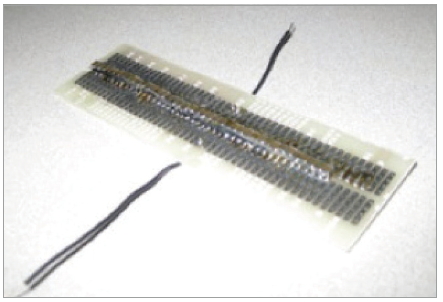커패시터의 허용오차와 전압 정격감소는 물론, 실온이 아닌 온도에서 테스트를 수행하려 할 경우 온도 정격감소까지 감안해야 한다. 그림 2는 10Hz까지 측정하기 위해 만들어진 최초의 AC 커플링 캡 중 하나이다. 여러 캡들을 프로토보드 위에 나란히 납땜한 후, 각각의 끝에 와이어를 납땜했다. 효과는 있지만 매우 낮은 잡음의 LDO를 측정할 때에는 환경적인 잡음이 문제가 될 수 있다.