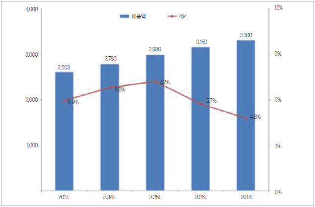 세계적인 경기불황 영향으로 미국과 유럽에서 일시적인 침체를 나타낼 것이 예상되나 기타 지역에서는 지속적인 성장세를 보여 전반적인 안정세가 예측되고 있다.