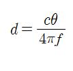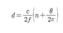 그런데 d의 최대 거리가 명백하게 정해져 있을 때 n은 0(zero)으로 가정한다. 그러면 간단한 계산으로 식 (2)로 나타낼 수 있고, 이 때 변조 주파수 와 최대 측정거리 와의 관계는 식 (3)과 같다.
