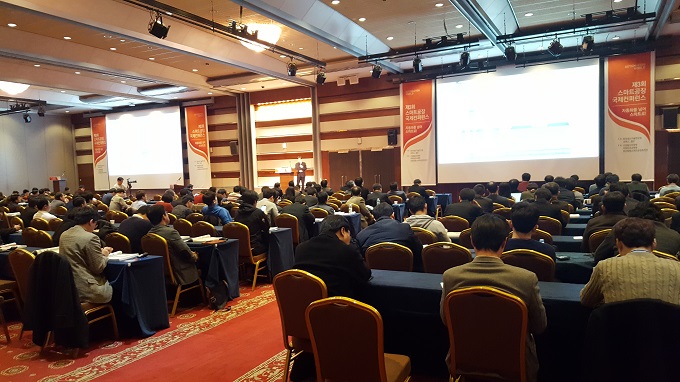 ▲ 9일 열린 스마트 공장 국제 컨퍼런스 현장. 산업자원부 이규봉 팀장이 정부 계획을 발표하고 있다.