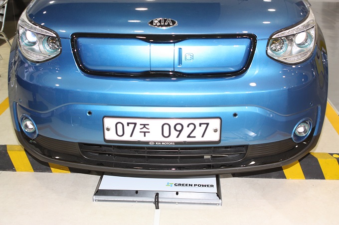 ▲그린파워가 개발한 무선충전 전기자동차 시스템.
