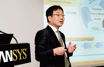 국내 CAE 시장 공략을 위한 전략을 발표하고 있는 앤시스 코리아의 조용원 대표