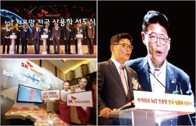 SK텔레콤은 최근 서울 광화문 포시즌즈호텔에서 최재유 미래부2차관, 김진형 KAIST 교수, 노영규 한국사물인터넷 상근부회장, 50여개 협력사 대표 등이 참석한 가운데, IoT 전용망 전국 상용화 선포식을 갖고, 파격적 로라 전용요금제, 관련 서비스, 상생을 통한 IoT 신산업 활성화 전략을 공개했다.