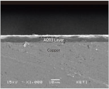 KETI가 개발한 Metal PCB의 방열 기술은 에어로졸 증착법을 이용해 상온에서 Al2O3, AlN 등의 세라믹 분말을 금속기판 상에 충돌시켜 치밀한 세라믹층을 형성함으로써, 기존 Metal PCB의 절연층에 비해 열전도도가 우수한 세라믹 절연층을 형성되도록 한 것이다.