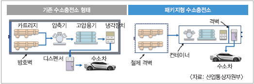 또한 방호벽 설치로 안전이 확보되면 충전소와 보호시설, 설비 간 안전거리가 완화될 것이고 압축·저장·충전 설비 모듈화를 통해 기존 대비 설치비용이 30% 절감될 것으로 기대되고 있다.