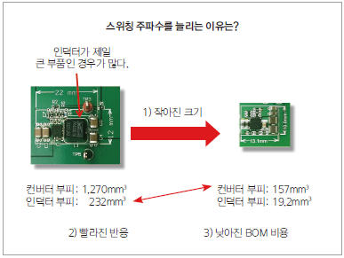 전원 공급 장치의 크기를 줄이는 또 다른 방법은 컨버터 내의 부품들을 리스케일링 하는 것이다. 전원 공급 장치가 대부분 시스템에서 공간의 30~50%를 차지하는 것을 감안했을 때, 이러한 공간 절약의 의미는 크다. 그러나 뒤에서 설명하겠지만 벅 컨버터의 규모를 줄인다는 것은 쉬운 일이 아니다.