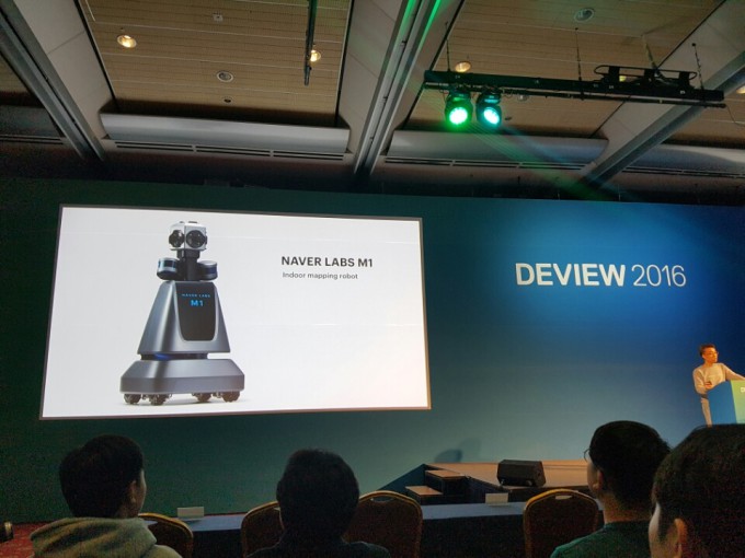 이날 네이버는 자사의 최초 개발로봇 'M1'도 공개됐다. 상용화를 목표로 개발된 로봇 'M1'은 혼자 돌아다니며 실내 3D 지도를 만드는 것이 핵심 기능이다. 현재 막바지 개발이 한창이다. 송 CTO는 "M1은 3차원 고정밀 지도를 만들 수 있는 로봇으로 실외 뿐만 아니라 실내공간의 정보화가 핵심 기능"이라고 설명했다.