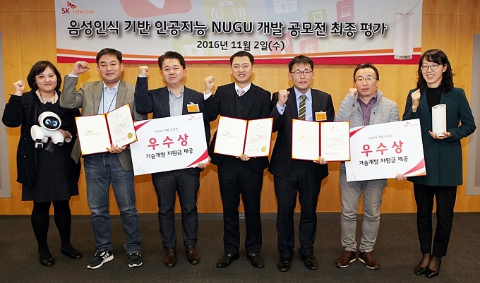 선정된 3팀은 ▲번역 솔루션을 활용한 영어 학습서비스 ▲‘누구’와 연동 가능한 소형 홈 로봇 ▲수유·수면·배변 등 각종 육아정보 수집 및 육아가이드 개발 등을 제안했다.