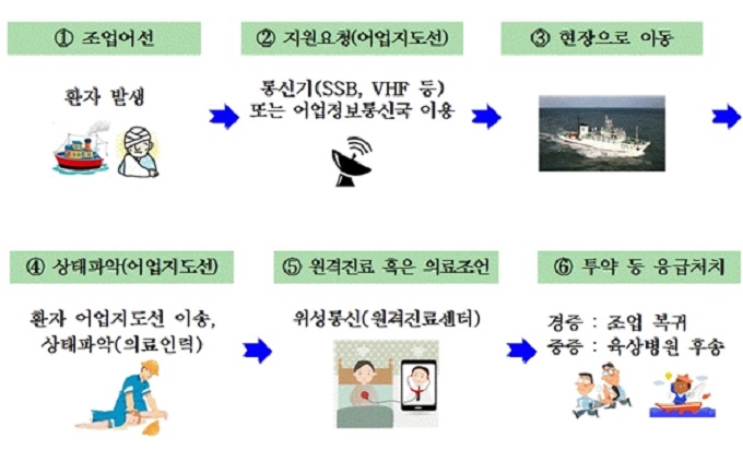한편, 해양수산부는 향후 지역별 거점병원을 구축, 연계하여 타박상 등 일반질환은 물론 급성․만성질환 등도 진료할 수 있도록 해상의료의 접근성과 편의성을 향상해나갈 예정이다.