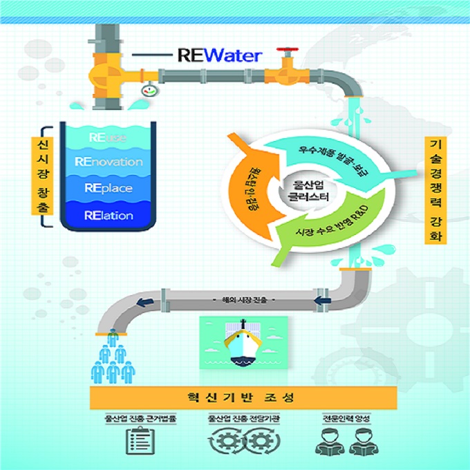 우선, 국내 물 기업이 세계 시장에 진출할 수 있도록 물 산업 클러스터를 조성하여 ‘기술개발 - 제품 사업화 - 해외진출’을 원스톱으로 지원하는 체계를 구축해 나갈 방침이다. 또한, 보조금 차등 지원과 해외진출 컨설팅 등을 통해 물 산업 시장 확산에 도움을 줄 계획이다.