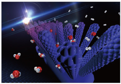 ▲ 그림 3. 나노숲 구조체(금속산화물)와 물이 만나는 과정에서 열화학적으로