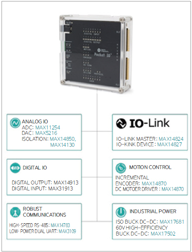 인더스트리 4.0 시대에는 전형적인 아날로그/혼합 신호 체계에 강점이 있고 연결 엔드포인트(유무선)에 이르는 신호 체인 전반에 이 체계를 통합하고 다중 프로토콜을 지원할 수 있는 공급사가 성공을 거둘 것이다. 맥심은 공장 운영 및 인더스트리 4.0 애플리케이션 실행 방식을 재정의하는 포켓 IO 프로그래머블 로직 컨트롤러(PLC) 개발 플랫폼을 선보였다.