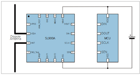 SL13A와 SL900A는 모두 마이크로컨트롤러와 같은 외부 기기에 연결할 수 있는 SPI(Serial Periph-eral Interface) 포트를 제공한다(그림 3 참조). 이것은 독립형 RF 태그에 의해 제공되는 감지, 데이터 로깅, 식별 기능 외에 콜드 체인 모니터링 애플리케이션에서 이용할 수 있는 다양한 기능을 제공한다. 특히 MCU는 로깅 데이터에 원격으로 직접 연결할 수 있게 셀룰러 트랜시버에 대한 연결을 제공한다. MCU는 또한 알람 시스템과 저장 수명을 계산하는 기능을 지원하도록 프로그래밍할 수 있다.