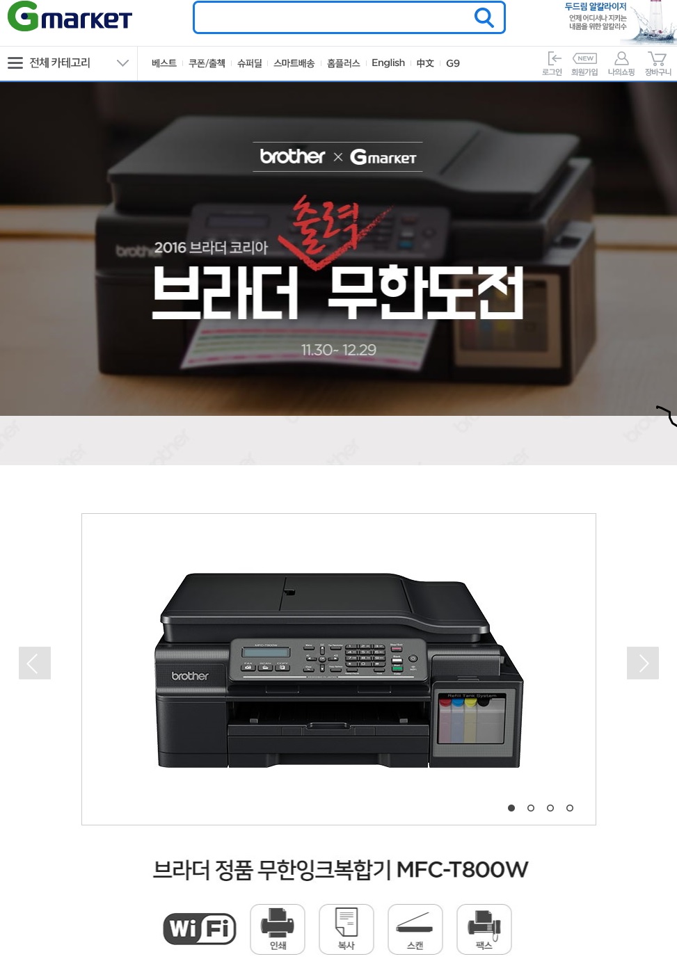 11월 30일부터 12월 29일까지 온라인 오픈마켓 지마켓에서 진행되는 이번 이벤트는 무한리필 잉크젯 복합기인 ‘MFC-T800W’ 출시 이후 처음으로 20만원대에 제품을 구매할 수 있는 기회를 제공한다.