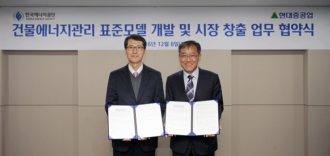 한국에너지공단(이사장 강남훈)은 현대중공업 전기전자시스템 사업본부(사업대표 주영걸)와 함께 건물 에너지관리 표준모델 개발 및 시장창출을 위한 업무협약을 8일 체결했다.