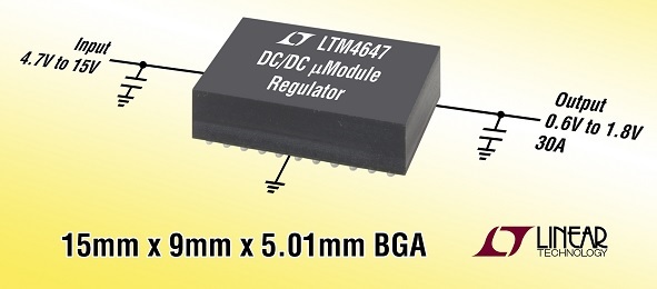 리니어 테크놀로지 코리아는 30A 스텝다운 µModule (파워 모듈) 레귤레이터 'LTM4647'를 출시했다.