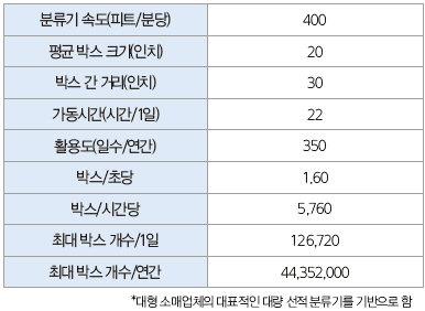 ▲ 표 1. 대량 물류센터의 작업현황에 대한 추정치*