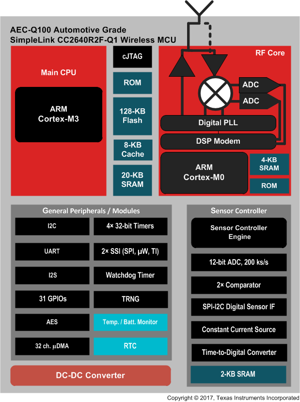 ▲ SimpleLink CC2640R2F-Q1 기능적인 다이어그램