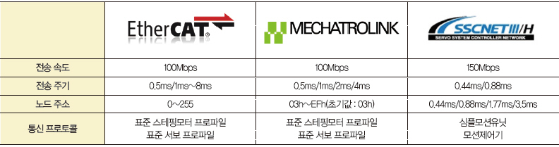 ▲ 표 1. AZ 시리즈 다축 드라이버 전용 통신 사양