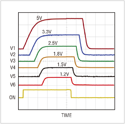 ▲ 그림 1. LTC2937을 사용해서 6개 전원 시퀀싱