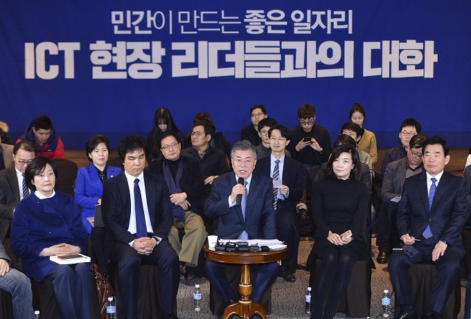 ▲ 문재인 전 더불어민주당 대표가 2일 오후 서울 구로구 지벨리컨벤션센터에서 열린 ICT 현장 리더들과의 대화에 참석해 인사말을 하고 있다. 2017.3.2/뉴스1 © News1 신웅수 기자