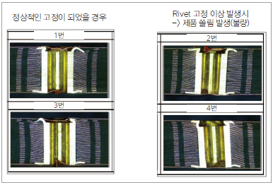 ▲ 그림 5. 정상과 Rivet 고정 이상 발생 그림