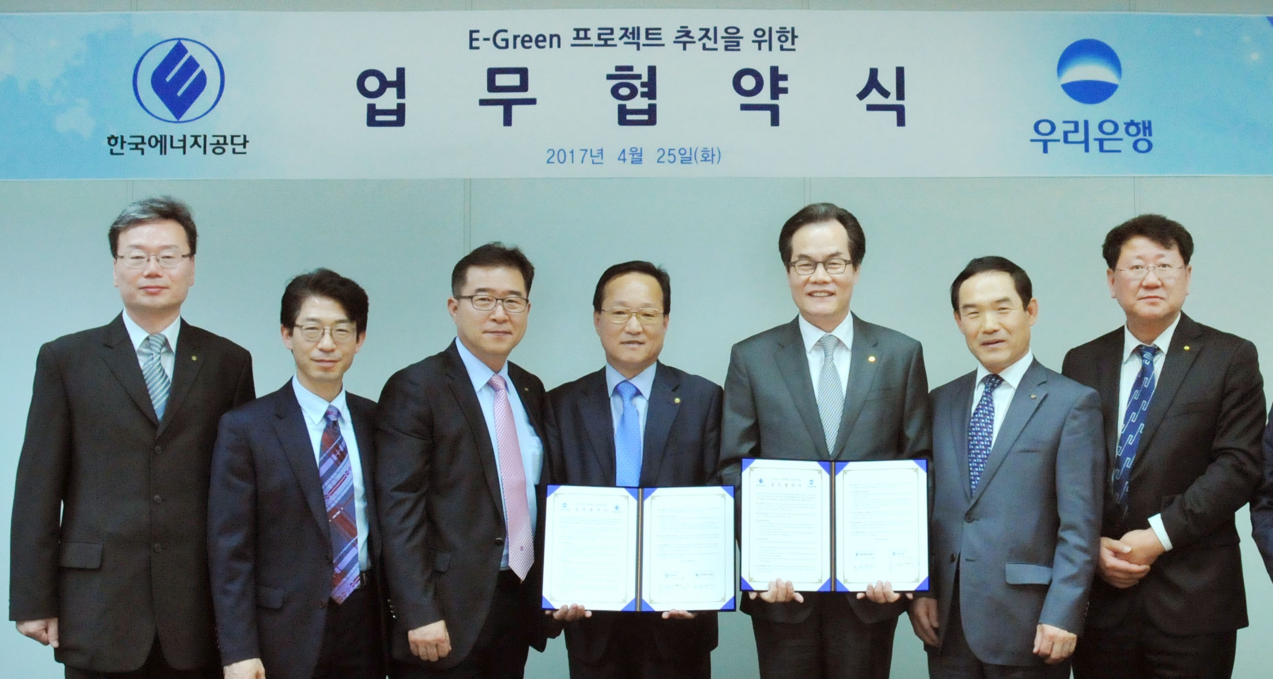한국에너지공단(이사장 강남훈)은 지난 25일(화) ㈜우리은행(은행장 이광구)과 「E-Green 프로젝트 추진을 위한 업무협약」을 체결했다.