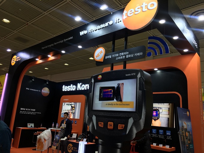 테스토는 이번 전시에서 다양한 산업분야에서 사용되는 열화상 카메라를 선보였다. testo 872는 모바일 기기와 연동되어 편리하고 스마트하게 사용할 수 있다는 점이 특징이다. 해상도는 320X240픽셀(슈퍼레졸루션 적용시 640X480픽셀)이고 0.06℃의 높은 온도 분해 기능을 갖고 있다. 열화상 카메라와 함께 모바일 기기에서 실시간으로 확인이 가능한 스마트 프로브 제품도 선보였다. 테스토의 파이프 클램프 온도 측정기는 난방 시스템의 급배기 온도 측정과 냉방 시스템의 과열도, 과냉도 자동 계산을 위한 온도 측정이 가능하다.