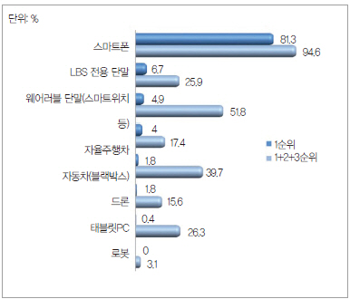 ▲ 그림4. 위치정보를 활용한 서비스가 가장 많이 적용될 단말기
