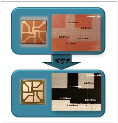 ▲ 그림 3. 16 wet 방식을 이용한 회로 패터닝