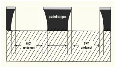 따라서 에칭액을 이용한 wet방식의 회로형성은 미세회로를 구현하기 어렵고 미세회로 형성시 단차 및 회로 불량을 야기시킬 수 있다.