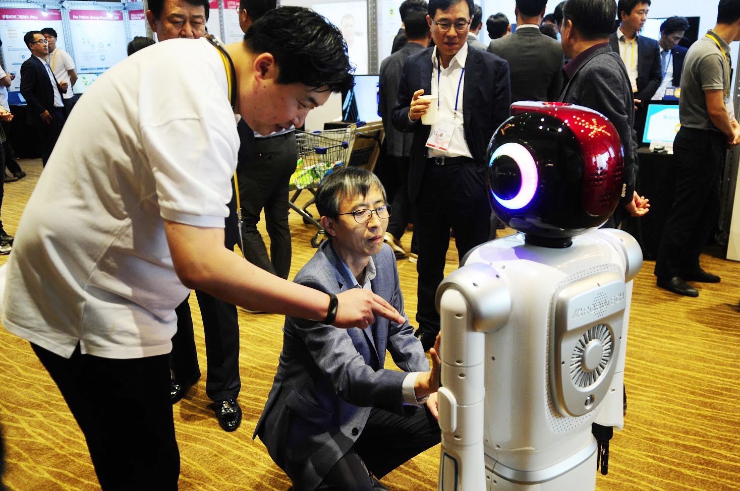 세미나 장 밖에서는 물류로봇, 안내로봇, AR글라스, 360도 VR, 핸드페이 등 첨단 IT 신기술들을 직접 체험할 수 있도록 해 참석자들의 높은 관심을 끌었다고 롯데정보통신은 전했다.