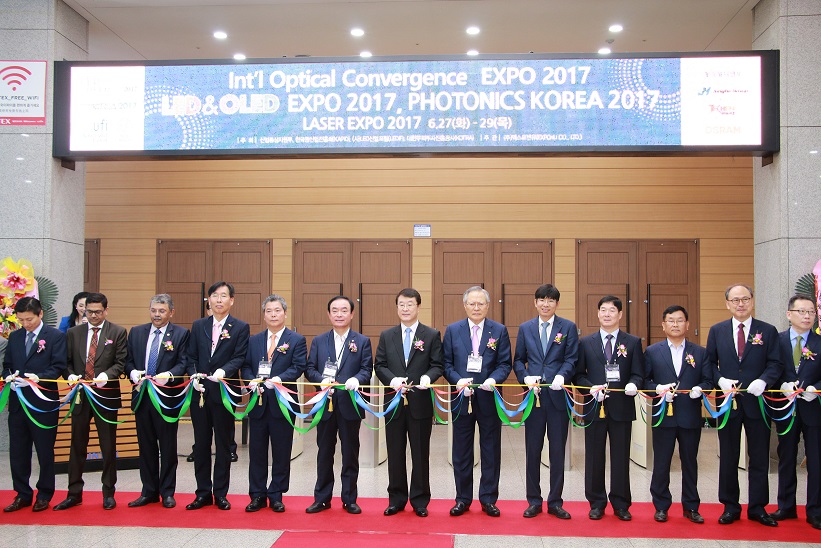 지난 27일(화) 일산 킨텍스에서 국회 장병완 산업통상자원위원회 위원장, 산업통상자원부 전기전자과 김종주 과장, 한국광산업진흥회 이재형 회장, 한국광기술원 김영선 원장, 한국조명연구원 임기성 원장, 코리아반도체 김종덕 대표이사, 애니캐스팅 김성빈 대표이사, Co-Creation Value Planning 나카조 히로모리 대표, FIOLEX 수닐 음마늄 대표이사, BBNL 딕팍찬두카 대표이사 등 국내외 관계자 100여 명이 참석한 가운데 '국제 LED & OLED EXPO 2017' 개막식이 개최됐다.