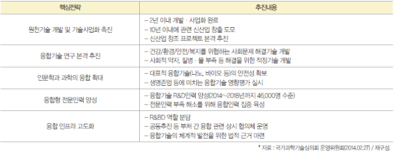5대 핵심 융합기술의 추진내용을 요약하면 표 2와 같다[3].