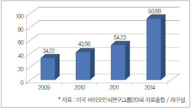 ▲ 그림 2-1. 바이오인식기술 관련 글로벌 시장규모(억 달러)