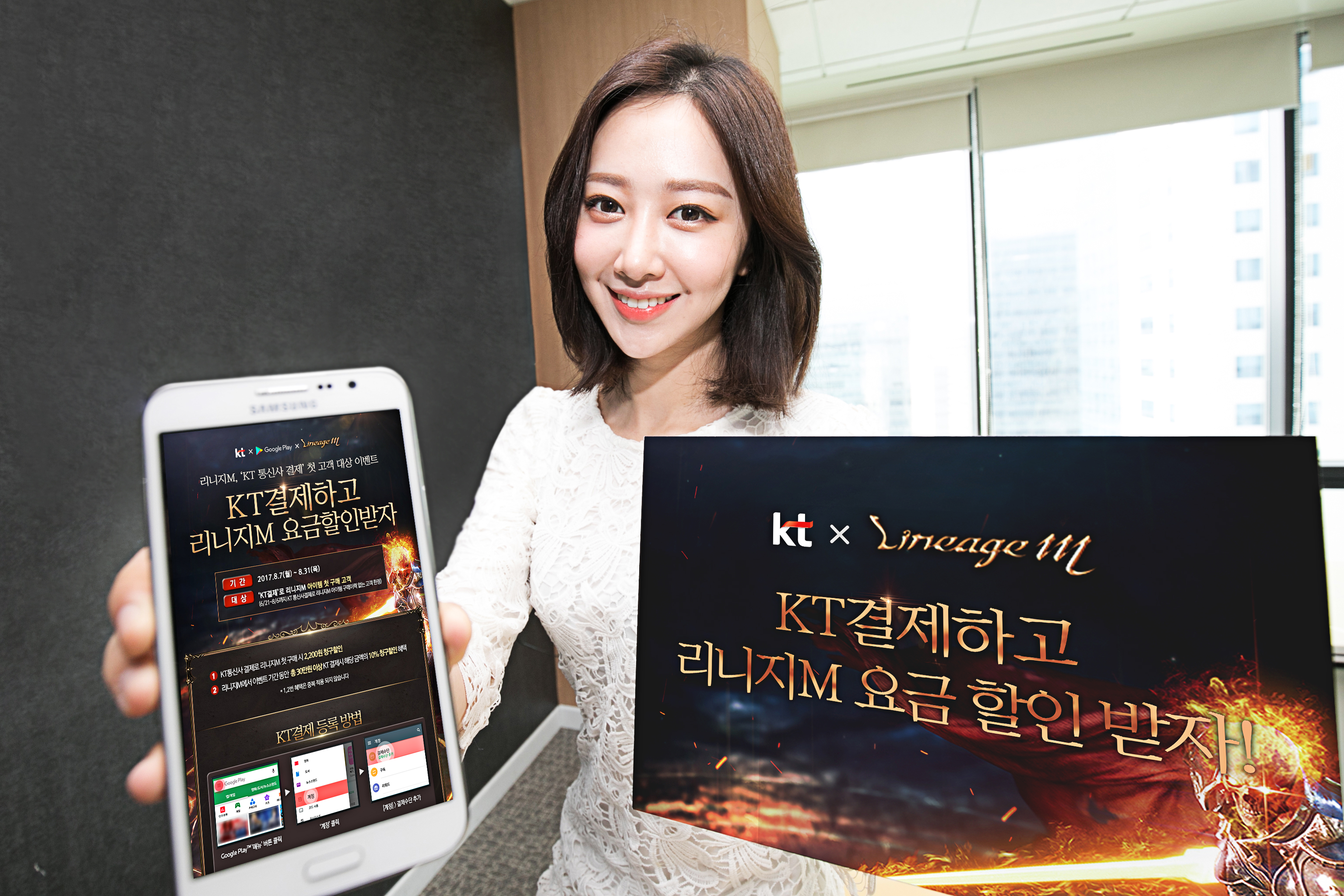 리니지M이 출시된 6월 21일부터 8월 6일까지 KT결제로 리니지M 아이템 구매이력이 없는 고객이라면 누구나 참여 가능하며, 청구할인 내역은 10월 통신요금 청구서에 자동 적용된다.(단, 법인폰, 알뜰폰, 청소년요금제 이용 고객은 제외)