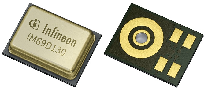 인피니언의 듀얼 백플레이트 MEMS 기술을 적용한 아날로그 및 디지털 마이크로폰은 차별화된 70dB의 신호대 잡음비(SNR)를 제공한다. 또한 135dB 음압 레벨(SPL)일 때 10%로서 왜곡이 극히 낮다. 4mm×3mm×1.2mm MEMS 패키지로 제공되는 마이크로폰은 고음질 음향 레코딩과 원거리 음성 포착 등의 애플리케이션에 적합하다.
