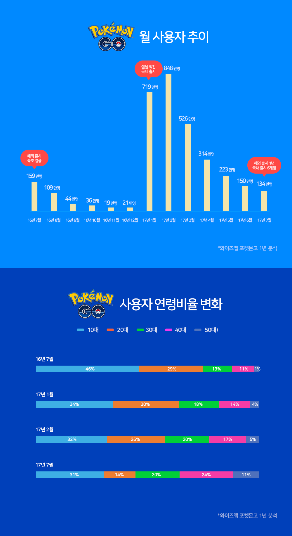 올 7월 현재 포켓몬고는 사용자가 급감, 월 134만 명이 이용했다. 이는 작년 7월 속초 열풍 때의 159만 명보다도 작은 수치다.