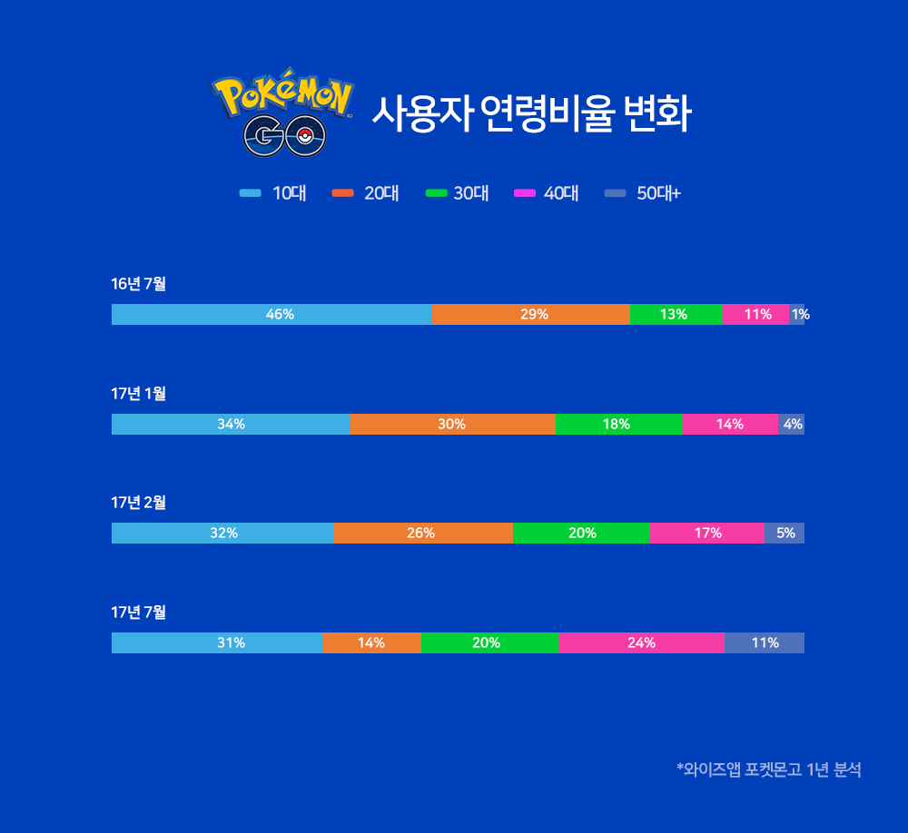 모바일 앱 분석 서비스 와이즈앱에 따르면 많은 10대, 20대가 더 이상 포켓몬고를 하지 않는다.
