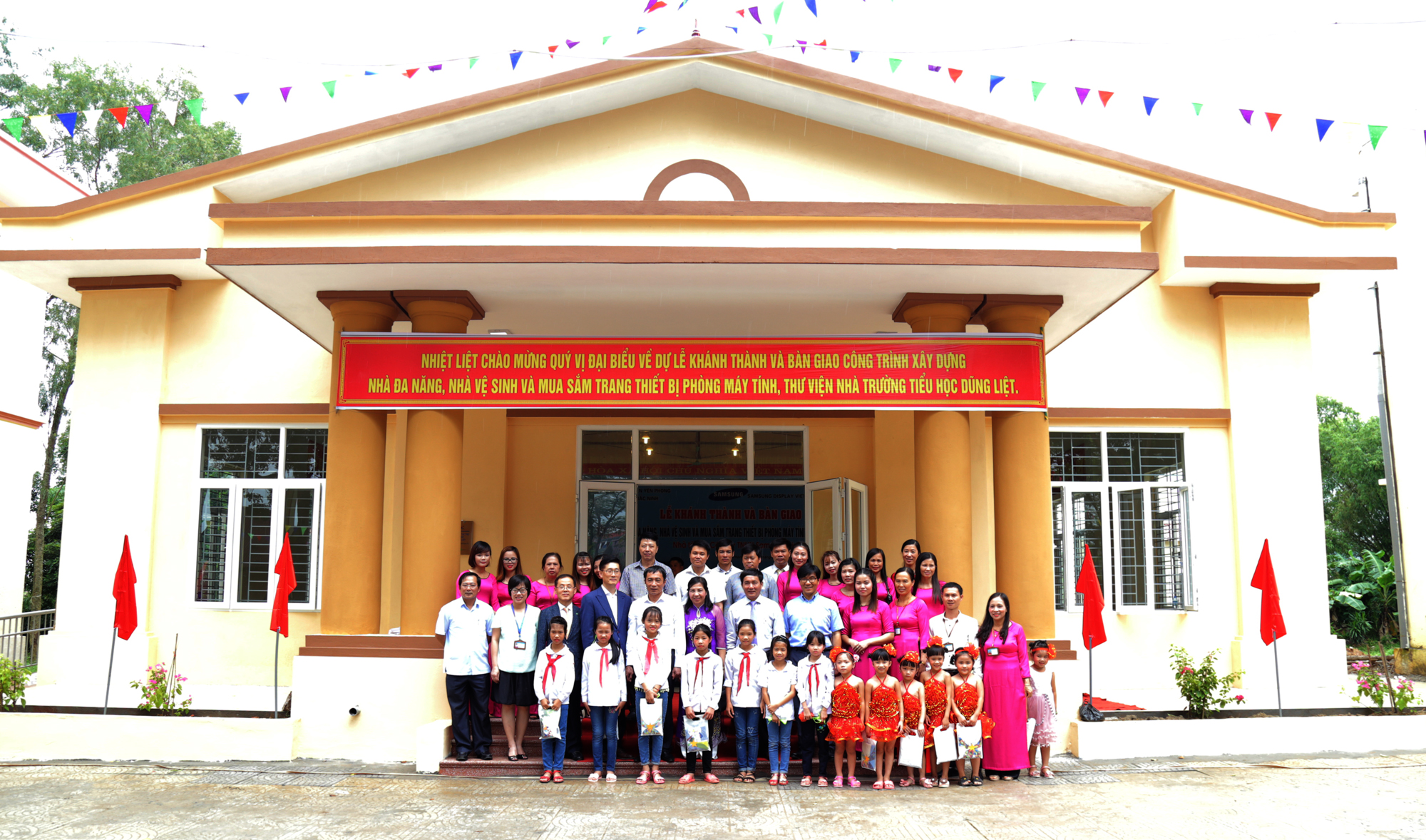 삼성디스플레이는 학생수에 비해 부족한 시설과 열악한 교육환경 개선이 필요한 박닌성 중리엣 초등학교에, 우천시 체육활동 및 식사 공간으로 활용할 수 있는 소강당과 수세식 화장실 신축 및 도서관, 멀티미디어실 리모델링 등을 지원했다. 준공식에는 응웬반 퐁 박닌성 부성장과 레 티 뚜옛 교장을 비롯해 삼성디스플레이 베트남법인 이진수 상무와 기아대책 서경석 부회장 등이 참석했다.