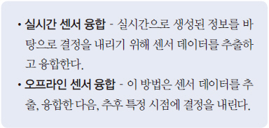 센서 융합은 하나의 센서 만으로는 제공할 수 없는 정보를 생성하기 위해 여러 다른 센서로부터 데이터를 추출한다. 그런 다음 이 정보는 최종 애플리케이션에 따라 추가 프로세싱과 분석을 거쳐 필요한 결정을 내리는데 사용할 수 있다. 센서 융합은 다음과 같이 두 가지로 분류할 수 있다.