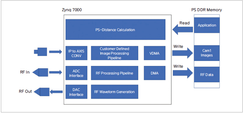 앞에서 설명한 객체 감지 및 거리측정 알고리즘을 개발하기 위해 reVISION 스택을 이용해 동종 및 이종 접근방식을 시연해 볼 수 있다. 이는 센서 융합 알고리즘을 하이-레벨에서 구현할 수 있도록 해준다. 그런 다음 알고리즘 성능 병목현상을 식별하여 프로그래머블 로직을 통해 가속화할 수 있다.