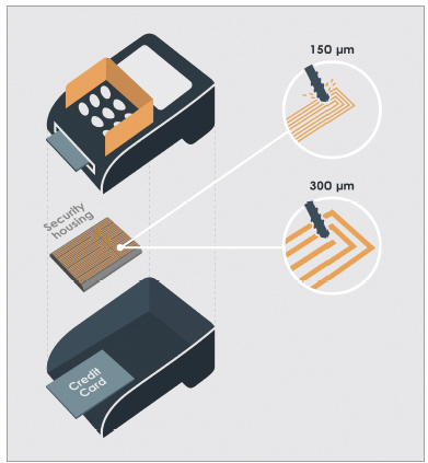 그렇다면, 사출 성형 플라스틱 회로 기판은 어떻게 기존의 PCB보다 물리적 공격을 더욱 효과적으로 방지할 수 있을까? 토마스 헤스는 “하드웨어에 액세스하기 위해 대부분의 해커들은 프로브나 미니 드릴을 이용한다. 멀티플 디멘전의 트레이스는 단말기 보호 캡 내부에 직접 배치되며, 이러한 폐쇄-회로는 다른 트레이스와 매우 근접하게 위치하고 있어 해커가 트레이스를 손상시키지 않고는 액세스할 수 없도록 해준다.”고 말하고, “트레이스가 손상되면, 전체 회로가 동작을 멈추게 되고, 즉각적으로 POS 단말기는 셧다운되며, 캐시 데이터는 손실되고, 장치를 더 이상 사용할 수 없게 된다. 멀티플 디멘전의 기술을 통해 고객들은 가장 엄격한 PCI DSS(Payment Card Industry Data Security Standard) 요건을 손쉽게 준수할 수 있다.”고 설명했다.