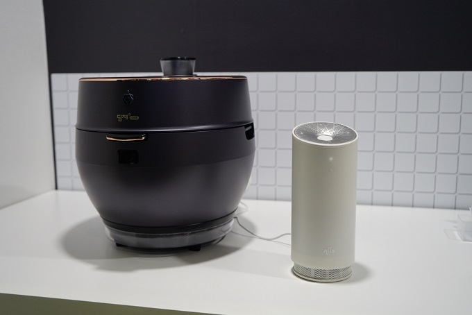 ▲ 인공지능 음성인식 스피커 'NUGU'와 전기밥솥 연동 모습