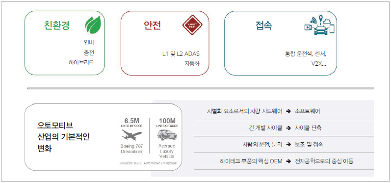 ▲ 그림 3. 자동차에 반영된 기술과 반도체