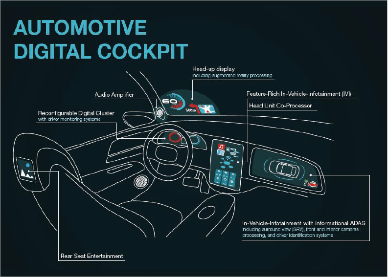 정보 ADAS 및 통합 디지털 운전석이라는 개념을 다음 단계까지 발전시킨 TI는 2015년과 2016년, 2017년 CES (Consumer Electronics Show)에서 단일 ‘Jacinto 6’ 프로세서로 실행되는 실제 시스템 데모들을 시연했다.