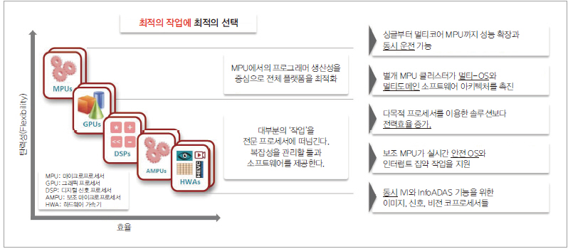 · 최적의 동시 운전, 안전, 보안, 전력, 성능을 위한 이종의 아키텍처들을 이용해 새로운 오토모티브 사용 사례들을 해결