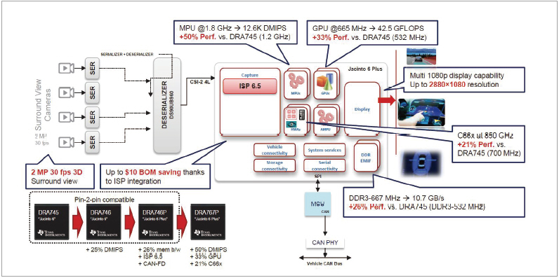 · DSP 및 임베디드 비전 엔진(EVE) 가속기 등을 포함한 ‘Jacinto 6’의 강력하고 입증된 아키텍처를 활용해 출시 기간을 단축