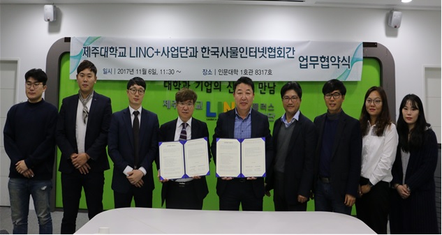 협약식에 참석한 한국사물인터넷협회 전성태 본부장은 “협회와 제주대 LINC+사업단의 협력으로 제주지역 사물인터넷 산업의 활성화는 물론 현장 실무 중심의 대학교육 실현을 위한 실질적인 협력이 이루어 질 수 있도록 적극 노력하겠다”고 밝혔다.