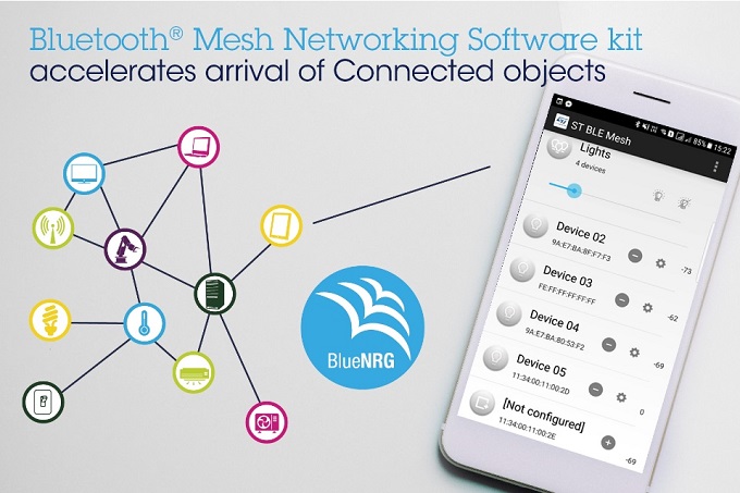 ST의 BlueNRG-MESH 소프트웨어 개발 키트(SDK)로는 네트워크 연결 제품과 이를 제어하는 스마트폰 앱을 개발할 수 있다. 안드로이드 및 iOS를 위한 두 개의 앱 개발자 패키지와 조명 부품 및 센서와 같은 스마트 사물 구축용 임베디드 개발 패키지로, 시장에서 유일한 3종으로 구성된 SDK이다. 세 가지 패키지 모두 ST의 BlueNRG 메시-레디(Mesh-Ready) 블루투스 저에너지 IC를 이용한 애플리케이션 구동을 위해 소프트웨어 빌딩 블록을 제공한다.